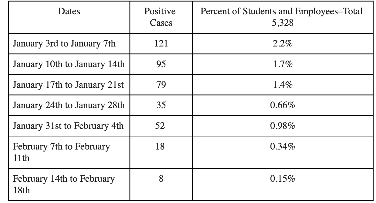 The tables below can offer insight into the data we have used and continue to use as we monitor the virus within our school community. It is important to note that the clinic will close due to a lack of need (only 22 tests last week), and all testing will be done within our buildings. Going forward, along with monitoring our school data, we will meet with our medical consultants and interpret and consider guidance and recommendations from the PA DOH and CDC.